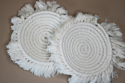 Handmade Coaster set of 2, Macrame Coasters, table decor, housewarming gift, gift for her,boho kitchen, Round Coaster